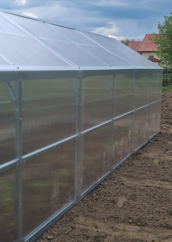 Nasze szklarnie są wyposażone w wyjątkowo trwały poliwęglan komórkowy z podwójną ochroną UV, co korzystnie wpływa na rośliny. Materiał zapewnia doskonałą izolację termiczną oraz przepuszcza do 90% światła, co przyspiesza wzrost roślin i dojrzewanie owoców. Poliwęglan zachowuje swoje właściwości w szerokim zakresie temperatur (-50 do +50°C), co sprawia, że szklarnia nadaje się do użytkowania w różnych strefach klimatycznych.