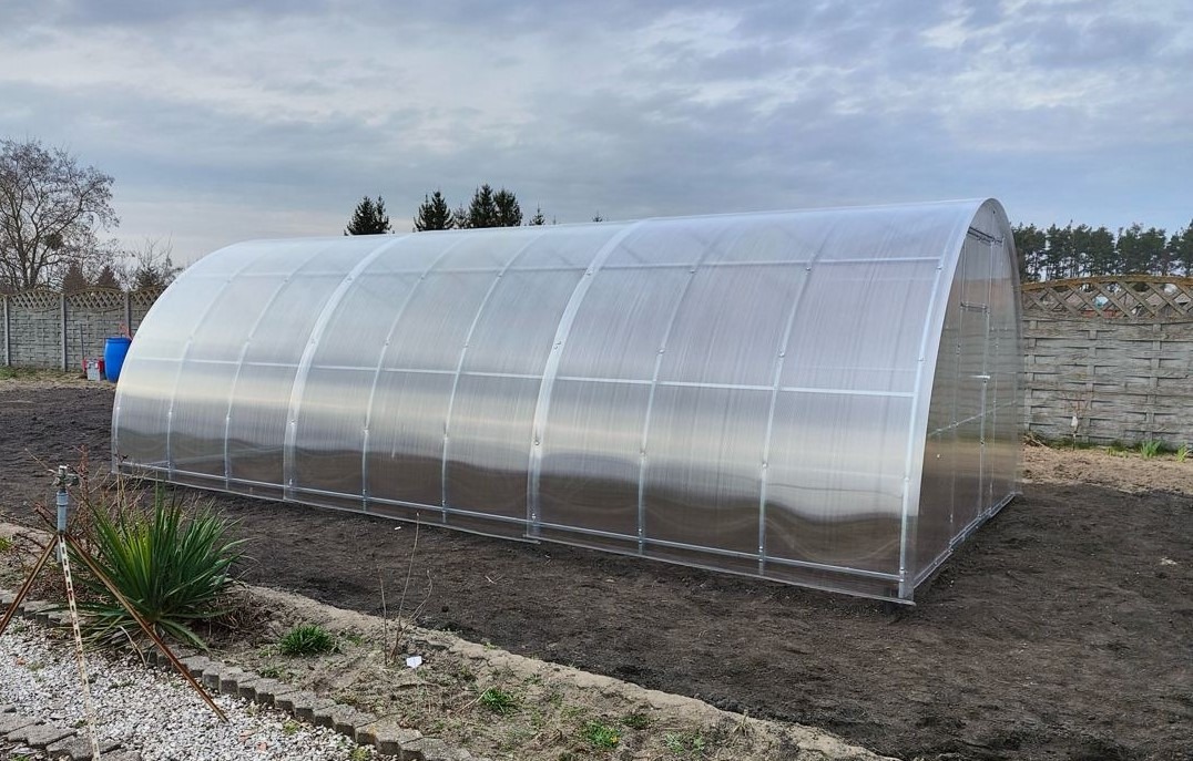 Pokrycie szklarni poliwęglanem komórkowym znacznie upraszcza konserwacjęh szklarni, dzięki czemu można zapomnieć o corocznej zmianie folii w tunelu foliowym. Oferujemy wersje poliwęglanu o grubości 4 mm i 6 mm, które mają trwałość do 10 lat.