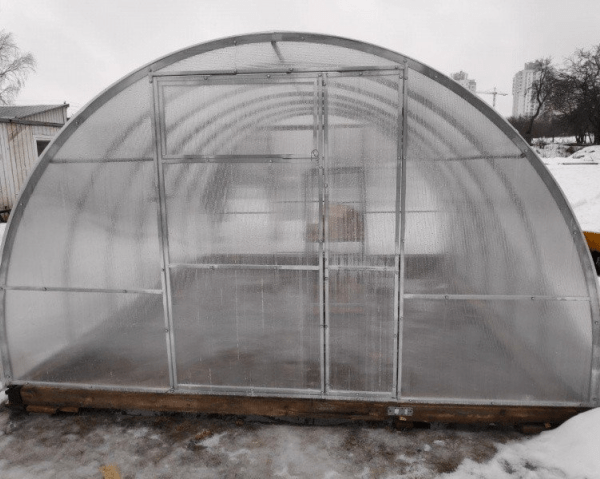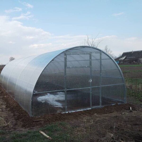Konstrukcja szklarni została wykonana z trwałego stalowego profilu ocynkowanego o przekroju 40×20 mm. Szklarnia posiada 7 poprzeczek, które wzmacniają ramę i gwarantują jej sztywność. Przemyślana konstrukcja nie wymaga demontażu na zimę. Zgięcie wykonane jest wzdłuż krawędzi na boku 40 mm co zapewnia dodatkową sztywność i wytrzymałość.