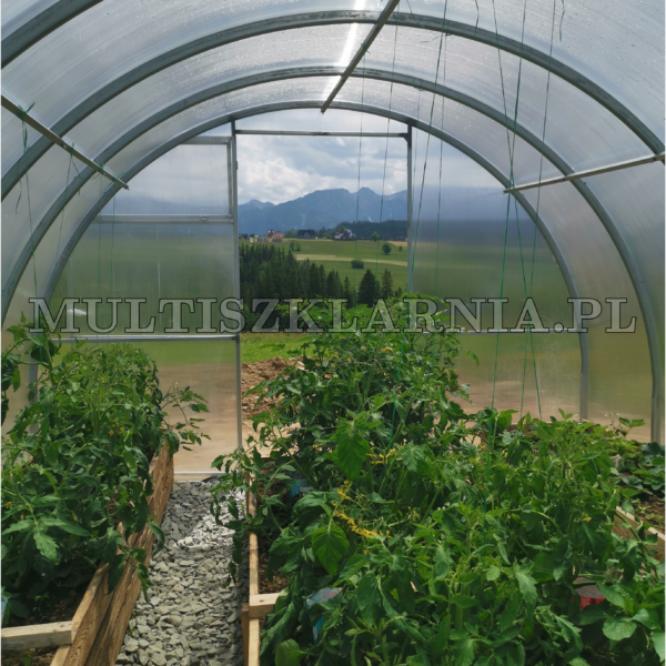 Pokrycie szklarni poliwęglanem komórkowym znacznie upraszcza konserwacjęh szklarni, dzięki czemu można zapomnieć o corocznej zmianie folii w tunelu foliowym.Oferujemy wersje poliwęglanu o grubości 4 mm i 6 mm, które mają trwałość do 10 lat.