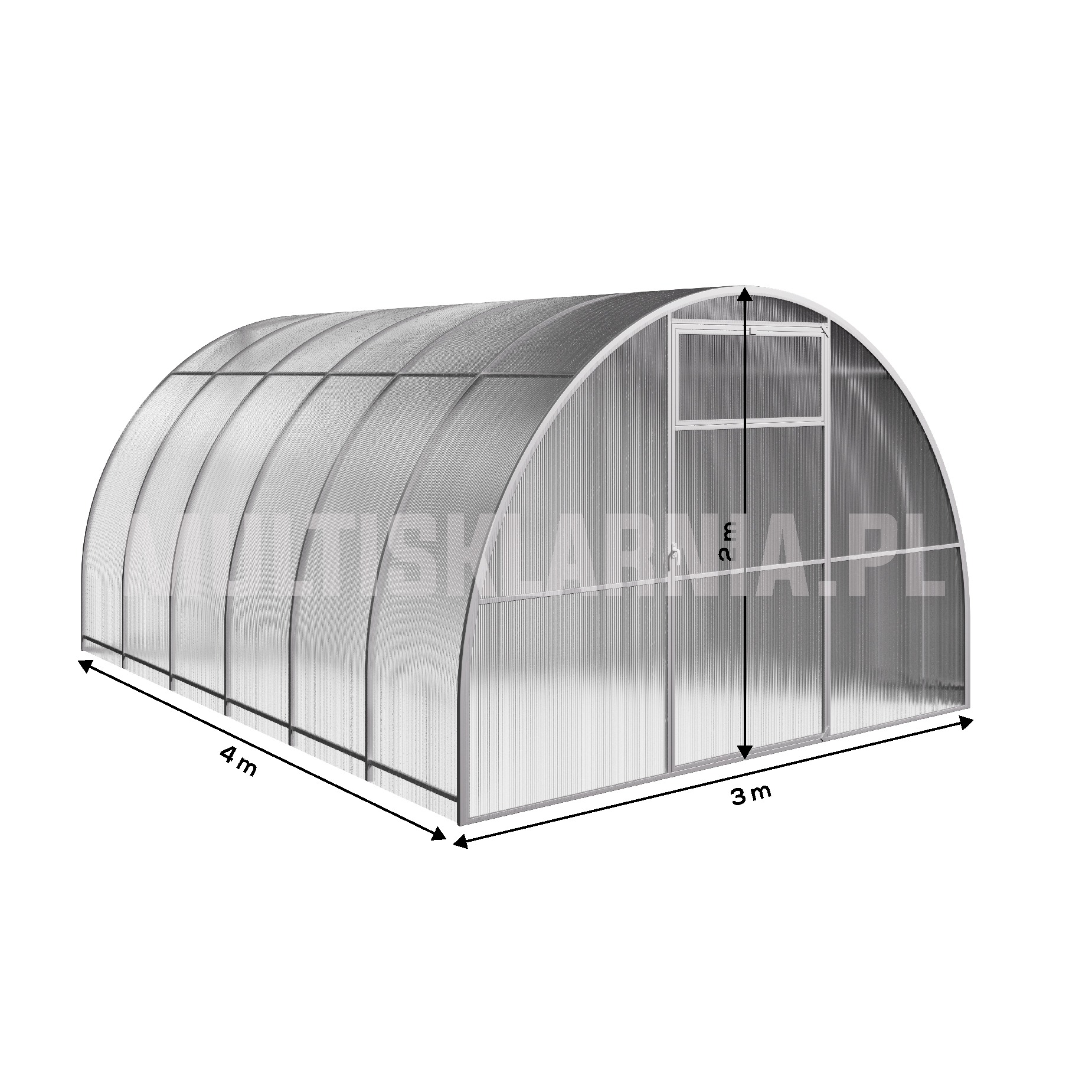 Przy przedłużeniu szklarni o 2 metry, należy dodać 2000 mm do powyższych wymiarów.